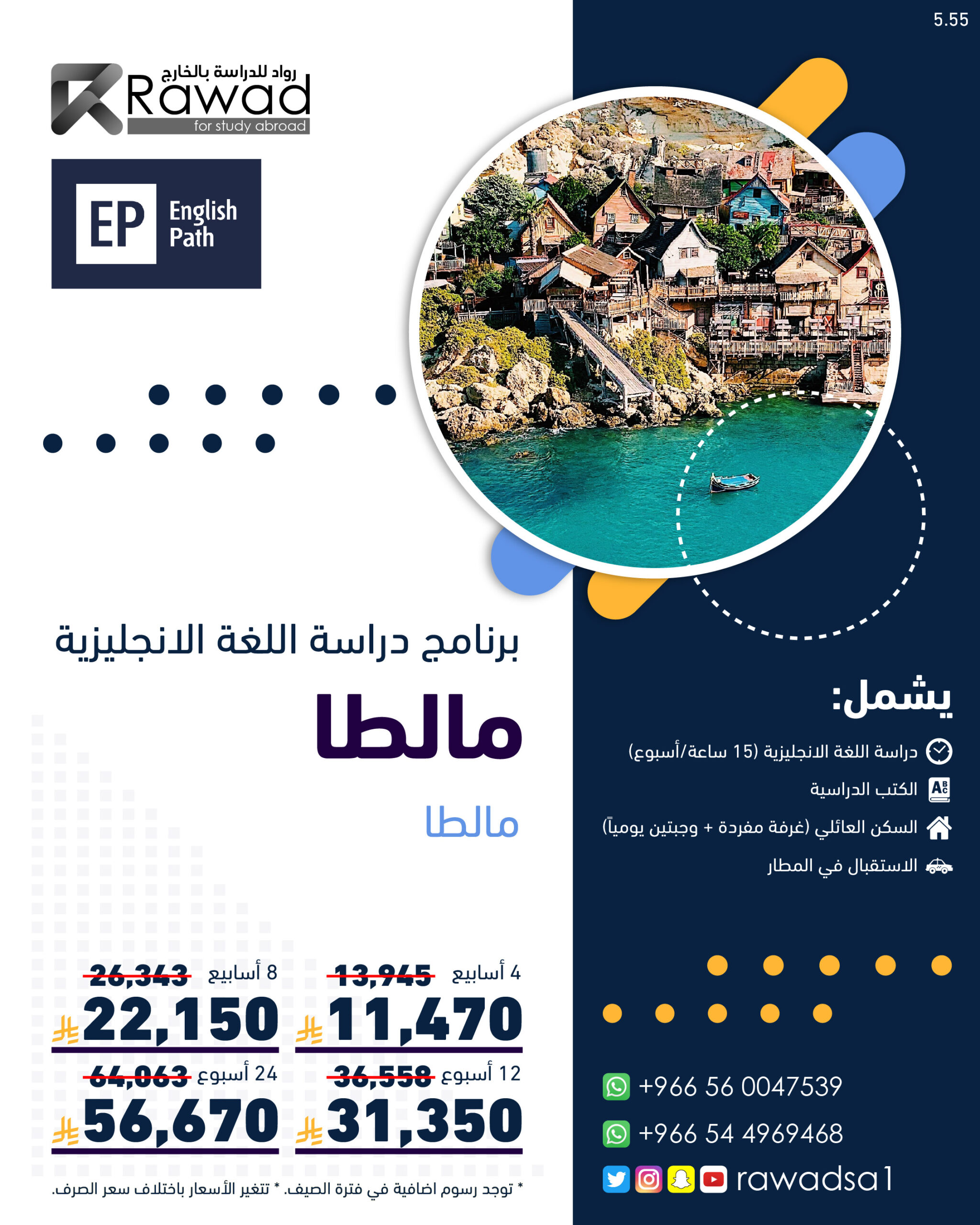 مالطا هي دولة جزرية في البحر المتوسط ، وهي مكان رائع لتعلم اللغة الإنجليزية، حيث يتحدث المالطيون الإنجليزية بطلاقة، وهناك العديد من المدارس والمؤسسات التعليمية التي تقدم دورات لتعلم اللغة الإنجليزية. ويتم تدريس اللغة الإنجليزية في جميع المستويات، بدءًا من المبتدئين إلى المتقدمين. كما يستخدم المدرسون أساليب تدريس حديثة وفعالة لتحسين مستوى الطلاب في اللغة. بالإضافة إلى ذلك، فإن مالطا توفر بيئة جميلة ومشمسة طوال العام ، مما يجعلها مكانًا رائعًا للاسترخاء والترفيه بعد دروسك.